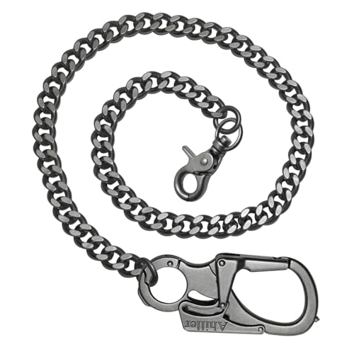 Ahiller herrplånbok, Heavy Duty nyckelkedja [karbinhake av legering, kedja av rostfritt stål], lämplig för jeans, plånböcker, väskor, Gunmetal grå-p, En Storlek