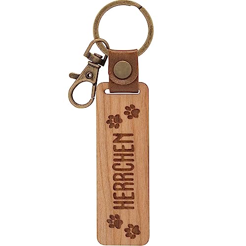 GRUSS & CO Nyckelhållare Nyckelkedja Trämotiv Herrchen | Hänge av Körsbärsträ med Gravyr Herrke, Inklusive Karbinhake | 48335, BRUN, Länge 15 cm