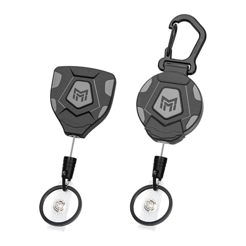 MNGARISTA Tungt hållbart upprullningsbart nyckelband, bältesklämma och karbinhake, 226,8 g upprullning, 80 cm stålrep, taktisk ID-badgehaspel med upprullningsanordning för nyckelkedja, 2 paket
