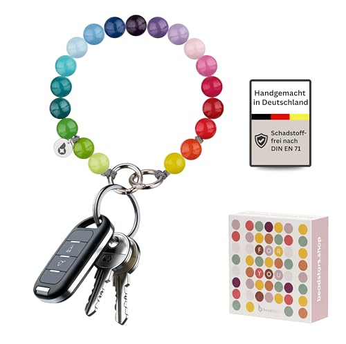 beadstars Nyckelkedja av träpärlor med karbinhake – 25 cm nyckelring eller mobiltelefonkedja – perfekt för nycklar, plånbok, kompatibel med Apple iPhone och Samsung, Regnbåge, Rainbow