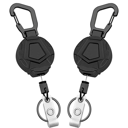 MNGARISTA uppgraderad kraftig infällbar nyckelring, bältesklämma ver. & karbinhake Ver., 10 oz retraktion, 80 cm rostfri stålkabel, taktisk ID-bricka rulle nyckelkedja indragare, 2-pack