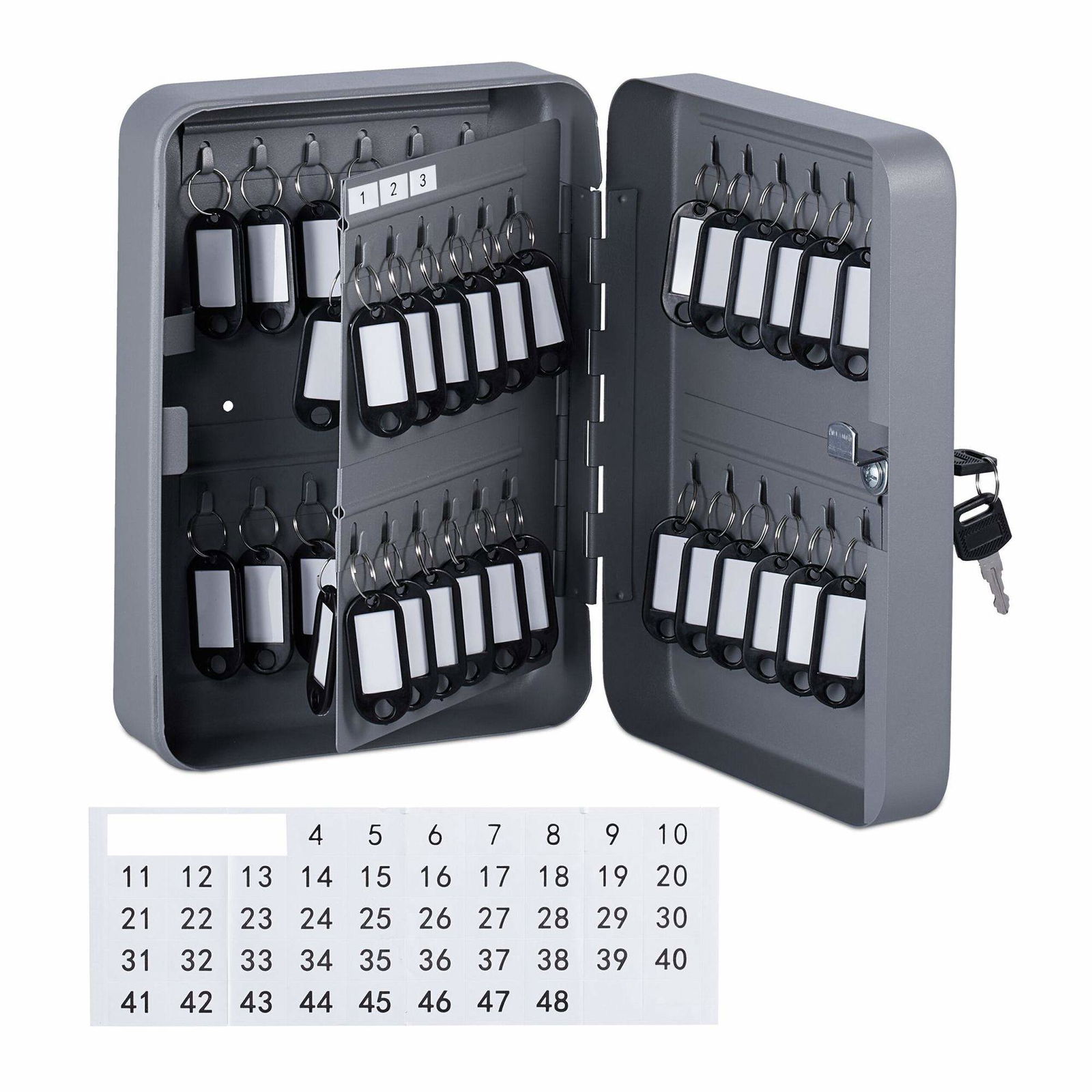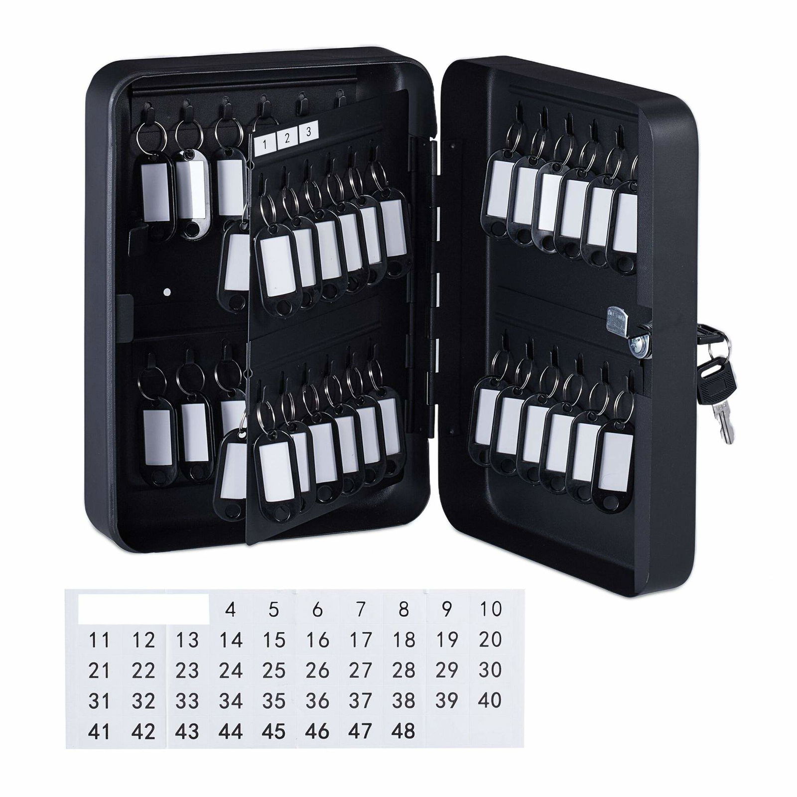 Relaxdays Nyckellåda metall, låsbar, 48 krokar, nyckelskåp inkl. nyckelring, 25 x 18 x 7,5 cm, svart, nyckel