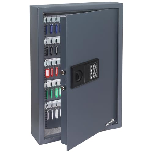 HMF nyckelkassaskåp med nummerkod, nyckellåda med elektroniklås | 108 krokar | 66,5 x 43 x 13 cm | antracit