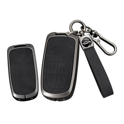 TEcart Smart bilnyckelsfodral passar Jeep Cherokee Compass Renegade nyckel skyddsfodral passar för Dodge RAM 1500 2500 Chrysler Fiat 500 nyckelhus nyckellåda läder 5 knappar brun