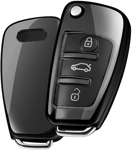 ELOHEI för Audi nyckelbricka skyddsfodral, premium mjuk TPU 360 graders fullt skydd nyckelskal kompatibelt med Audi A1 A3 Q3 Q7 R8 A6L TT (endast för 3-knappars nyckellåda) (svart)