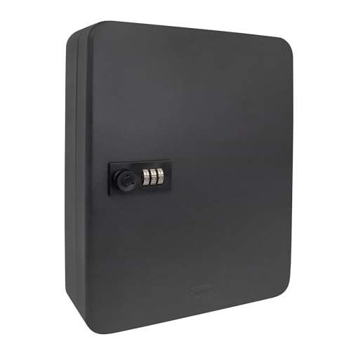 Idena 50120 – nyckellåda av metall, svart nyckelskåp med kombinationslås, ca 30 x 24 x 8 cm, inklusive 36 nyckelringar och nummerklistermärken