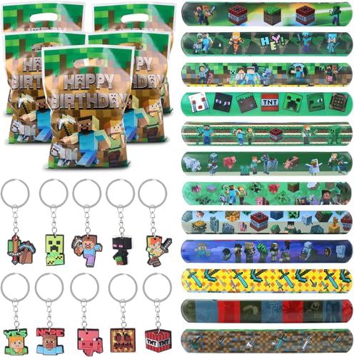 Dncvb 32 stycken videospel party present, gamer spel gästgåvor, spel nyckelring spel armband barn, gamer tema party tillbehör set för pojkar spel födelsedagar party gåvor