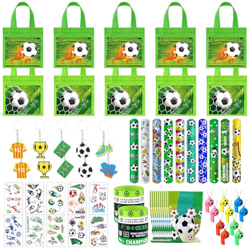 Fotbollsfest presentpåsar barn, 70 stycken fotbollsgåvor barnfödelsedag med fotboll presentpåsar, snäpparmband barn, nyckelring, visselpipa, tatueringar, fotbollspresenter pojkar