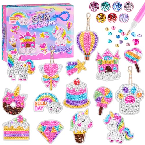 HGRGHH Hantverk flicka 6 7 8 9 10 år, 5D diamantmålning nyckelring, pyssla din egen GEM-nyckelring, pysselset barn från 6 år, enhörning flicka presenter 6–12 år