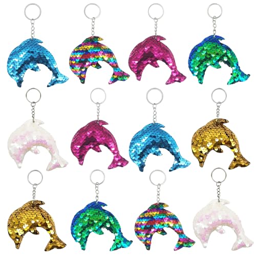 Yhjxly 12 stycken delfin-nyckelringar, paljettnyckelring, delfinhänge, nyckelring för barn, för barnfödelsedagar, flickor, barnväska, dekoration (sex färger)