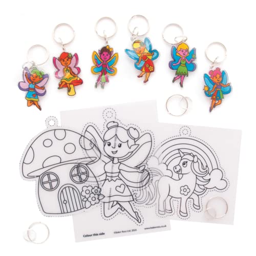 Baker Ross AX925 krympare nyckelring, motiv: Feer, 8 stycken, gör din egen nyckelring, för barn att måla, hantverk och presentera, medium