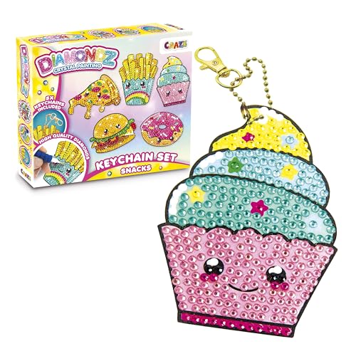 Craze Diamondz nyckelring set snacks – gör-det-själv diamantmålning nyckelring pysselset, diamantmålning barn 5 x mallar och tillbehör, XL