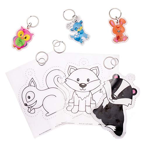 Baker Ross AW870 skogsdjur super-krymp-nyckelring, konsthantverk för barn, olika motiv, förpackning med 8 stycken