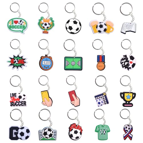 Eymobad 20 stycken fotbollnyckelringar, mini tecknad fotboll nyckelring, barn fest nyckelring silikon fotboll födelsedagspresent för pojkar flickor barn fest present, MULTI, Fußball Schlüsselanhänger