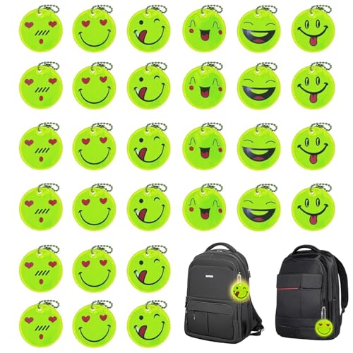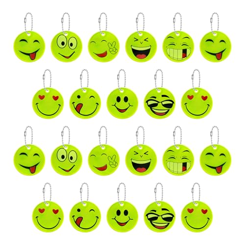 Parastar 22 stycken reflektorer barn, barn säkerhetsreflektor smiley nyckelring barn säkerhet reflektor hänge barn för skolväskor, ryggsäckar, vandring, nattlöpning och cykling