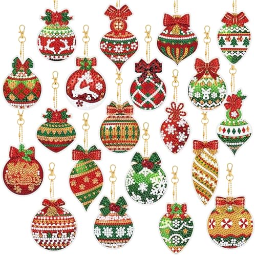 Guidre 20 stycken diamantmålning julhänge, 5D diamantmålning pysselset jul barn, diamantmålning barn nyckelring gör-det-själv pyssel