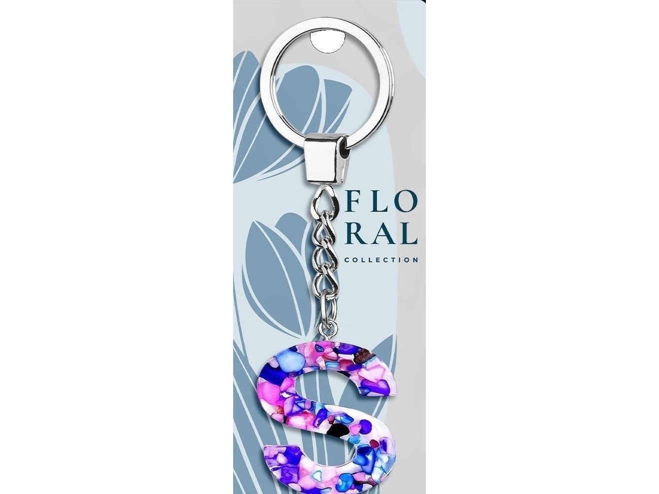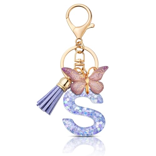 OSDUE mode alfabet initial bokstav nyckelring, kvinnor tofs fjäril rosa lila söt bil nyckelring, rosa och guld harts alfabet nyckelring, tofs fjäril hänge nyckelring för plånbok, S