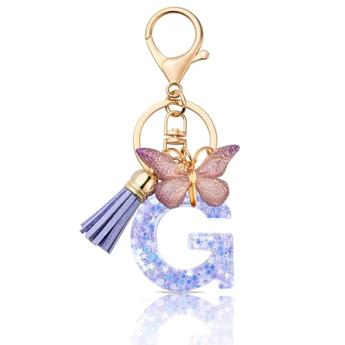 MORSUNBELA Nyckelring med Bokstav Fjäril för Flickor Nyckelring Bokstäver med Initial för Kvinnor,Lila-G