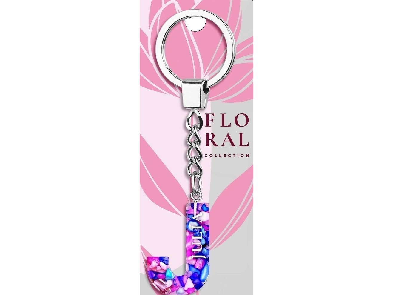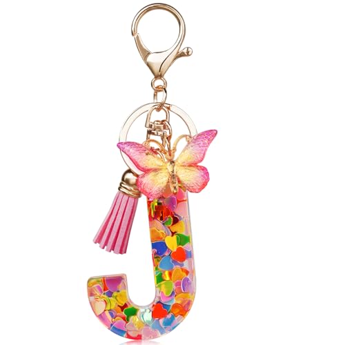 OSDUE nyckelring för kvinnor, alfabet nyckelring, flickor nyckelring, rosa nyckelring, fjäril nyckelring bokstav för kvinnor flickor födelsedagspresent, Bokstaven J, En Storlek