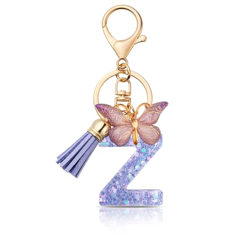MORSUNBELA Nyckelring med Bokstav Fjäril för Flickor Nyckelring Bokstäver med Initial för Kvinnor,Lila-Z