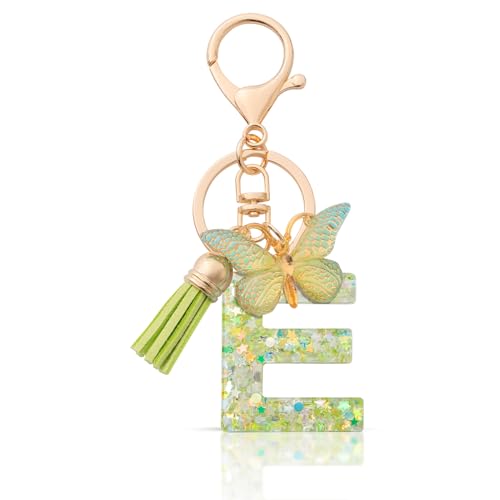 MORSUNBELA Nyckelring med Bokstav Fjäril för Flickor Nyckelring Bokstäver med Initial för Kvinnor,Grön-E