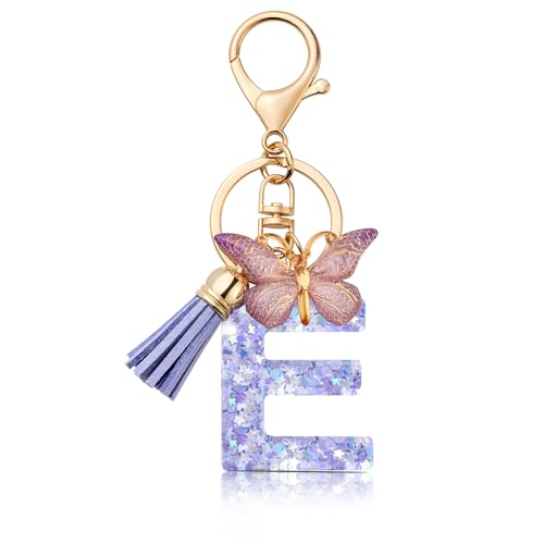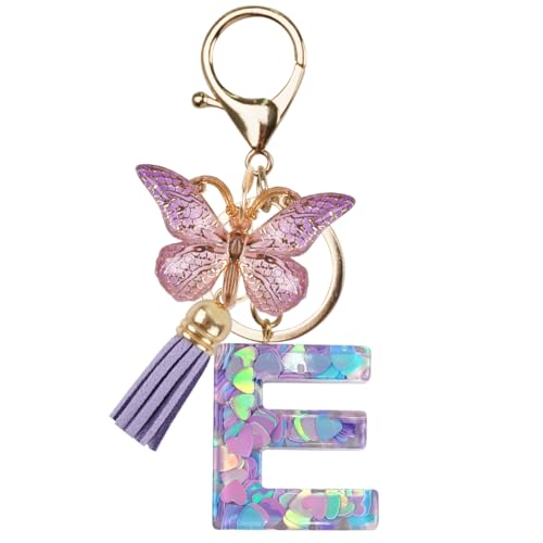 MORSUNBELA Nyckelring med Bokstav Fjäril för Flickor Nyckelring Bokstäver med Initial för Kvinnor,Lila-E