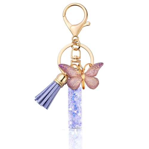 MORSUNBELA Nyckelring med Bokstav Fjäril för Flickor Nyckelring Bokstäver med Initial för Kvinnor,Lila-B