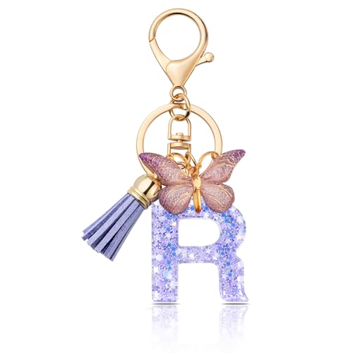 MORSUNBELA Nyckelring med Bokstav Fjäril för Flickor Nyckelring Bokstäver med Initial för Kvinnor,Lila-R