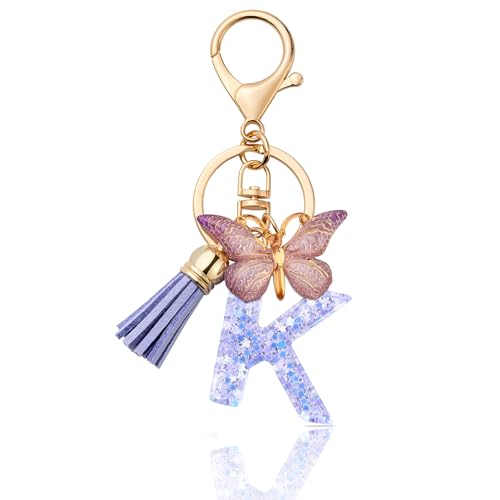 MORSUNBELA Nyckelring med Bokstav Fjäril för Flickor Nyckelring Bokstäver med Initial för Kvinnor,Lila-K