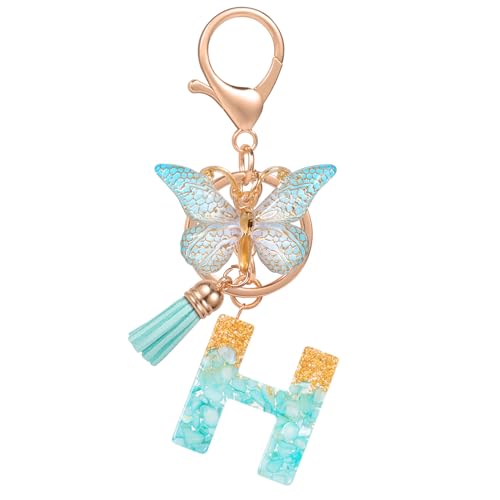MWOOT Bokstav nyckelring initial bokstav V harts, alfabet nyckelring berlock med tofsar fjäril hänge, Grön-h, 1