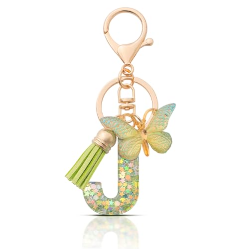 MORSUNBELA Nyckelring med Bokstav Fjäril för Flickor Nyckelring Bokstäver med Initial för Kvinnor,Grön-J