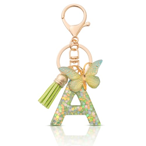 MORSUNBELA Nyckelring med Bokstav Fjäril för Flickor Nyckelring Bokstäver med Initial för Kvinnor,Grön-A