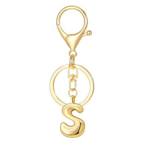MWOOT nyckelring bokstav för kvinnor flickor, guld bubbla initialer nyckelring tillbehör för plånbok väska handväskor berlocker, Guld-s, M