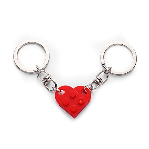 LAC EVERYTHING EVERYWHERE partner nyckelring hjärta – present för par och par – 2-i-1 hjärta hänge gjord av klämbyggstenar – kärlek present årsdag eller alla hjärtans dag (röd)