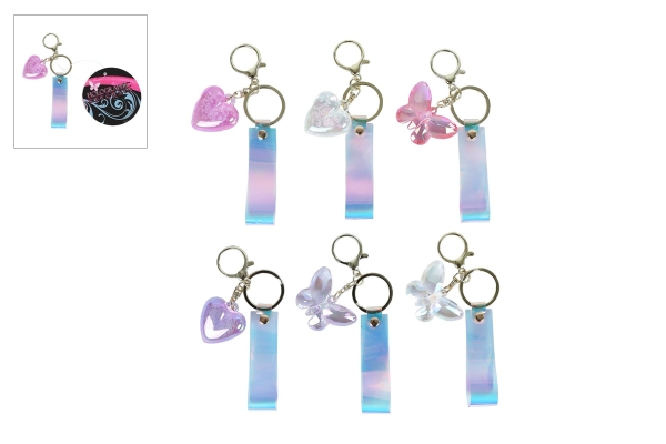 Holografiskt Nyckelring Hjärta/Fjäril 6 St. (Mix)