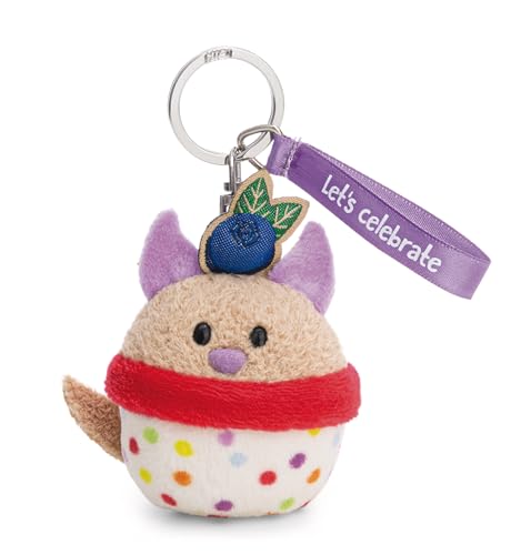 Nyckelring, Hund cupcake "Let's celebrate" 7 cm, beige, mångsidigt plyschhänge, med hjärtlig meddelande på fint satinband, för dig själv eller dina favoritmänniskor | 62867