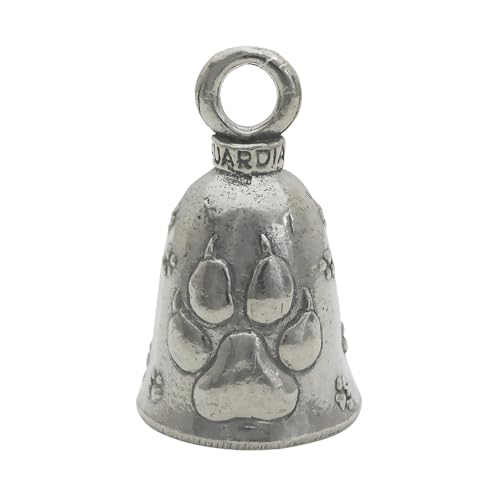 Guardian Bell Dog Lucky Bell med nyckelring och svart presentpåse i sammet | Motorcykelklocka | Blyfritt tenn | Tillverkad i USA, 1.75", Hårdtenn, Ingen ädelsten