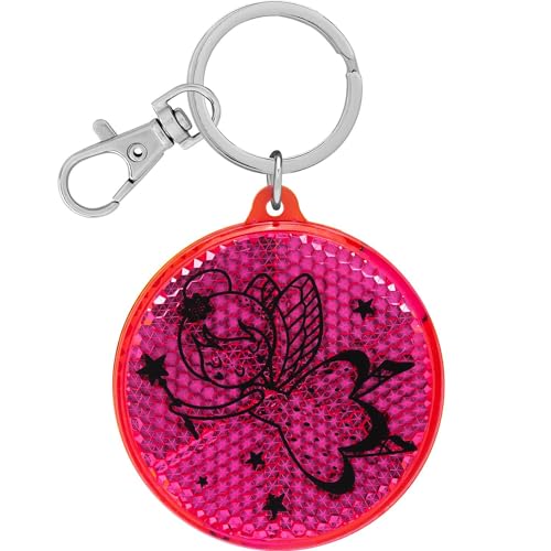 GRUSS & CO reflektor motiv fe | rund berlock med nyckelring och karbinhake, nyckelring på headercard, reflektorhänge | barns födelsedag, gåva, skolstart | 70157, ROSA, 5,5 cm, Motiv "älva"