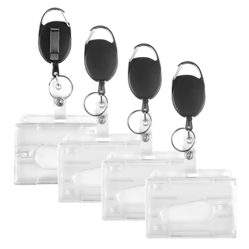 Relota 4 stycken utdragbara nyckelringar, infällbar nyckelring med ID-kortshållare, karbinhake, ID jojo märkesrulle, indragbar nyckelrulle, korthållare ID-kort klämma, transparent, One size