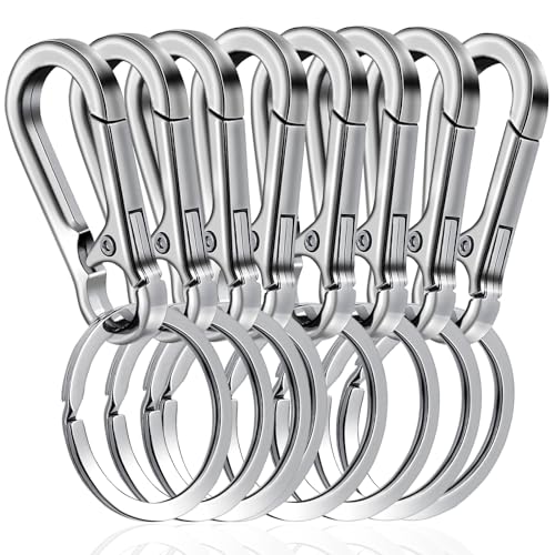 Amaxiu Slitstark nyckelring i metall, zinklegerings-nyckelring med snabbfrigörande karbinhake, för bilnyckel, unisex, 8 st, en storlek