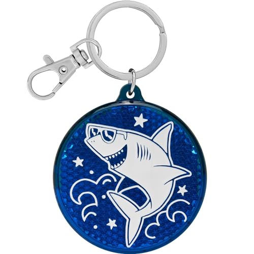 GRUSS & CO reflektormotiv haj | rund berlock med nyckelring och karbinhake, nyckelring på headercard, reflektorhänge | barns födelsedag, gåva, skolstart | 70142, blå, 5,5 cm, Motiv "haj"