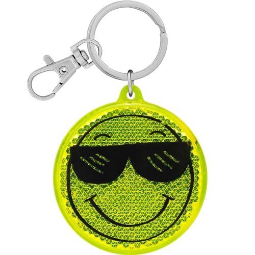 GRUSS & CO reflektormotiv smiley | rund berlock med nyckelring och karbinhake, nyckelring på headercard, reflektorhänge | barns födelsedag, gåva, skolstart | 70140, GUL, 5,5 cm, Motiv "smiley"