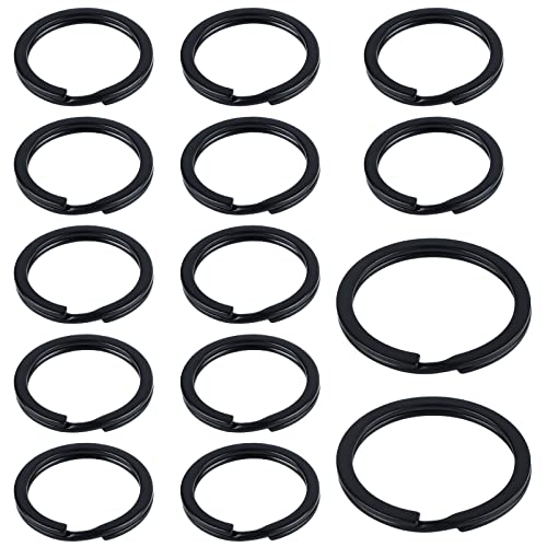 Uniclife 14 pack svarta nyckelringar ringset 25 mm och 32 mm platt nyckelring i starkt och robust stål för att organisera hem- och bilnycklar och hantverk