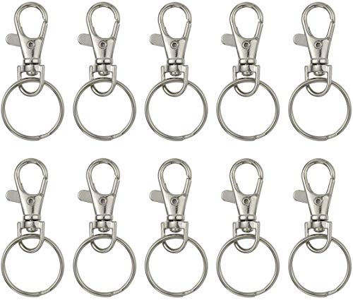 Nyckelring med karbinhake och nyckelringar, 48-pack, med 48 x 10 mm karbinhake med D-ring och 48 x Ø 25 mm delad ring, fickkarbinhake 360° vridbar nyckelring, metallringar