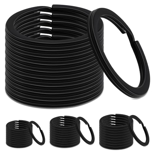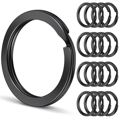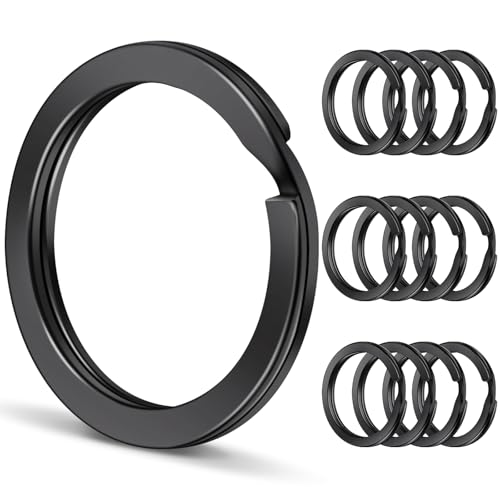 20 st nyckelringar 25 mm, Caianwin rostfritt stål nyckelring ring svarta platta delade ringar för bilnycklar organisering tillverkning hantverk och gör-det-själv
