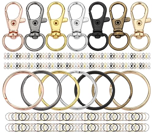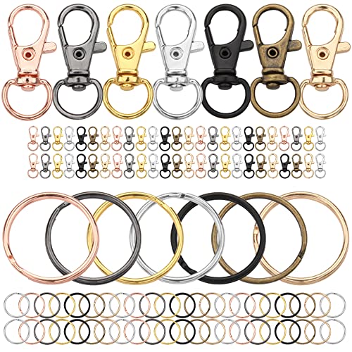 Nyckelringar 25 mm 200 st karbinhake nyckelring pysselset (100 nyckelring liten + 100 karbinhakar med vridled) nyckelring gör-det-själv för gör-det-själv smycken hantverk (7 färger)