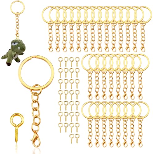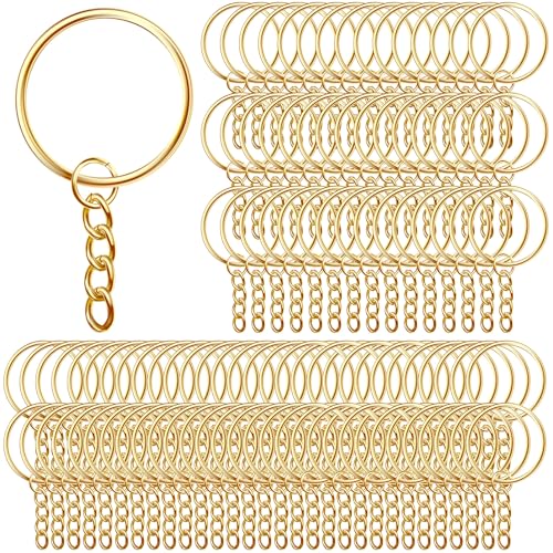 AiQInu 100 stycken 25 mm nyckelring med kedja, nyckelringar med delade ringar, nyckelring set för nyckel hantverk gör-det-själv, smyckestillverkning – guld