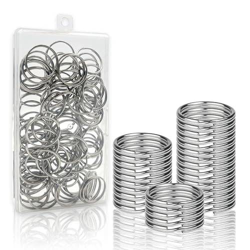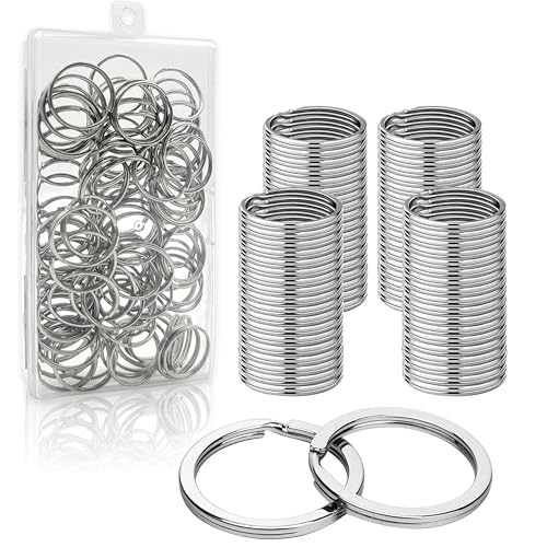 Voarge 100 stycken nyckelringar 25 mm rostfritt stål, rund nyckelring, metall delad ring, nyckelring ringar för husnycklar organisering och hantverk, silver