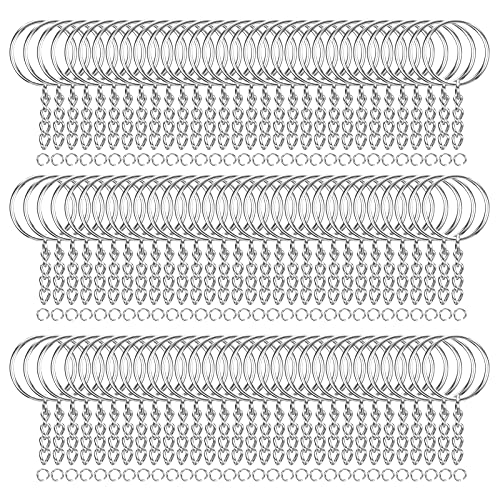 PAXCOO Tonver 150 st delade nyckelringar med kedja och bindringar bulk för hantverk (25 mm)