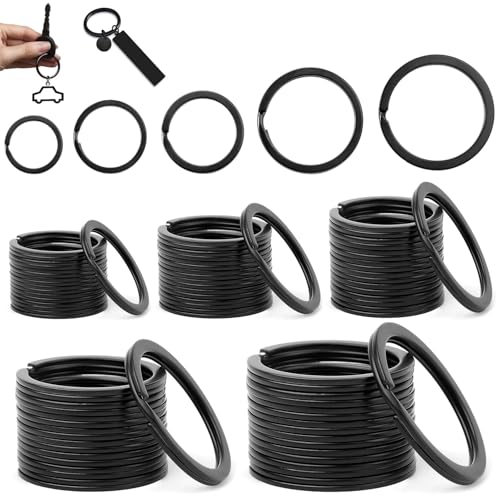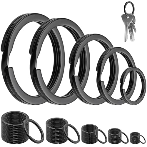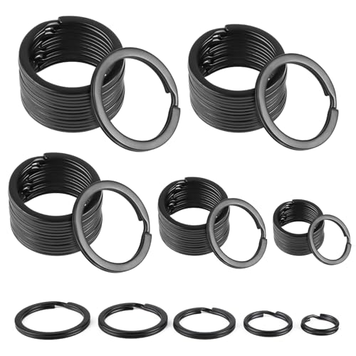 TIANCONGYUN 76 stycken nyckelringar svart, 30 mm/28 mm/25 mm/20 mm/15 mm nyckelring ringar, runda nyckelringar i rostfritt stål för bil, hus, nycklar